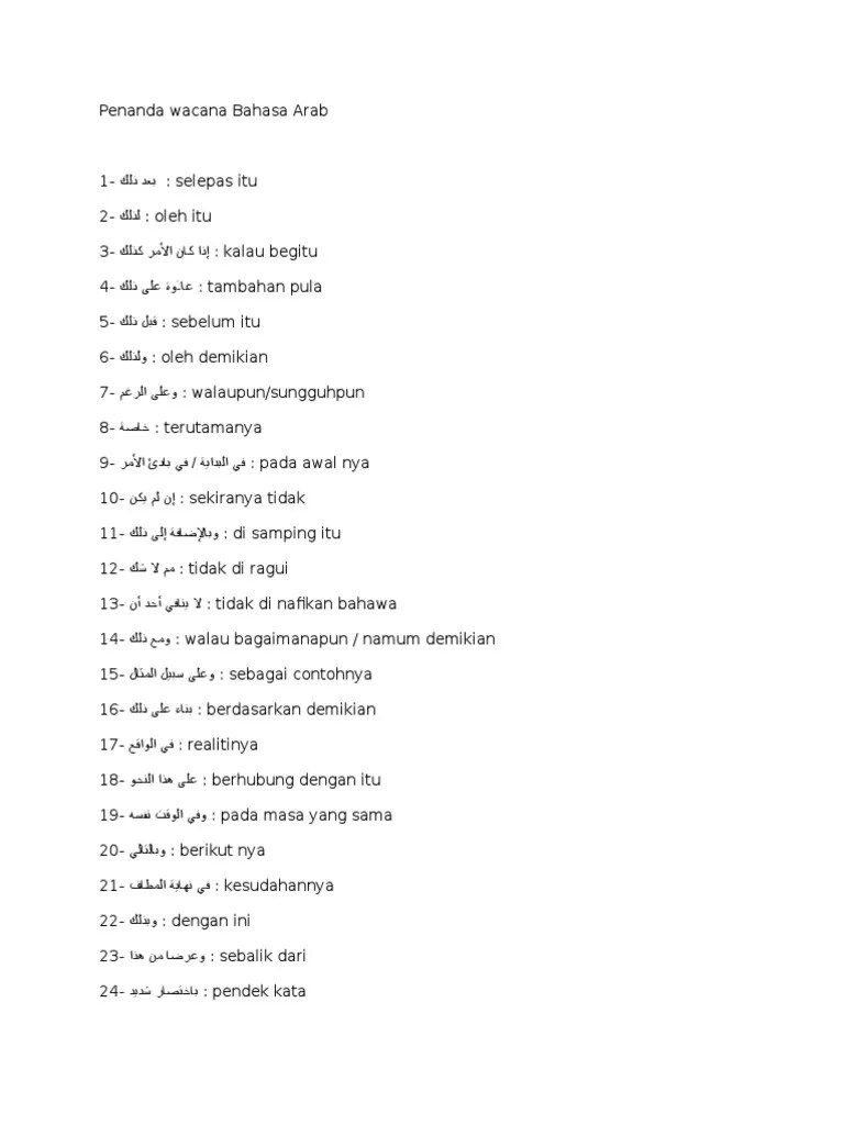 Koleksi 50 penanda wacana bahasa arab. A semantic study of the conjunction penggunaan kata hubung dalam bahasa arab dan terjemahan bahasa. 1) digunakan untuk menghubungkan kata dengan kata, frasa dengan frasa dan ayat dengan ayat. Buku teks tahun 3 bahasa arab.